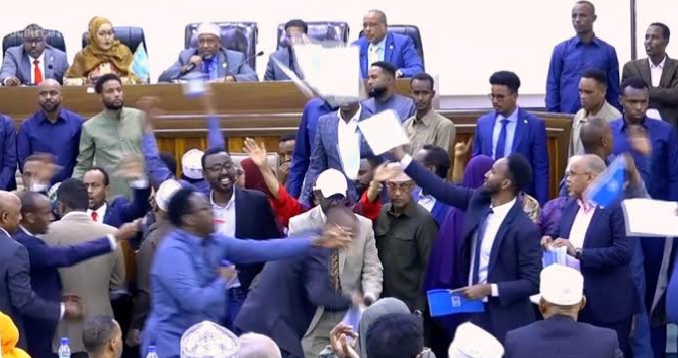 Crisis broke out on Wednesday at a joint session of Somalia’s parliament following at attempt to pu I’msh a proposed constitutional amendments that seeks to extend the tenure limit of parliamentarians.